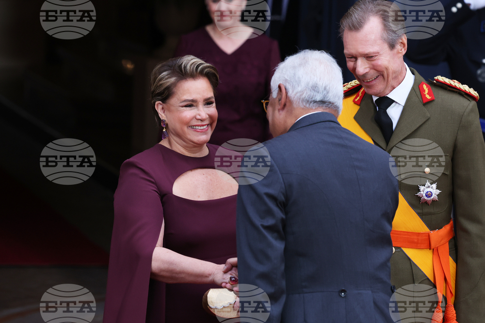 European Council President Antonio Costa, center, is greeted by Luxembourg's Grand Duke Henri, right, and Grand Duchess Maria Teresa as he arrives for the abdication and enthronement ceremony of the Grand Duke of Luxembourg at the Grand Ducal Palace in Luxembourg, Friday, Oct. 3, 2025. (AP Photo/Omar Havana)
