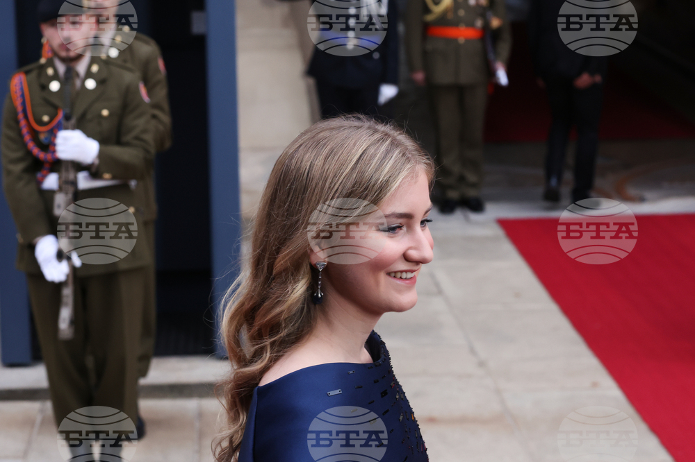 Belgium's Princess Elisabeth, center, arrives for the abdication and enthronement ceremony of the Grand Duke of Luxembourg at the Grand Ducal Palace in Luxembourg, Friday, Oct. 3, 2025. (AP Photo/Omar Havana)