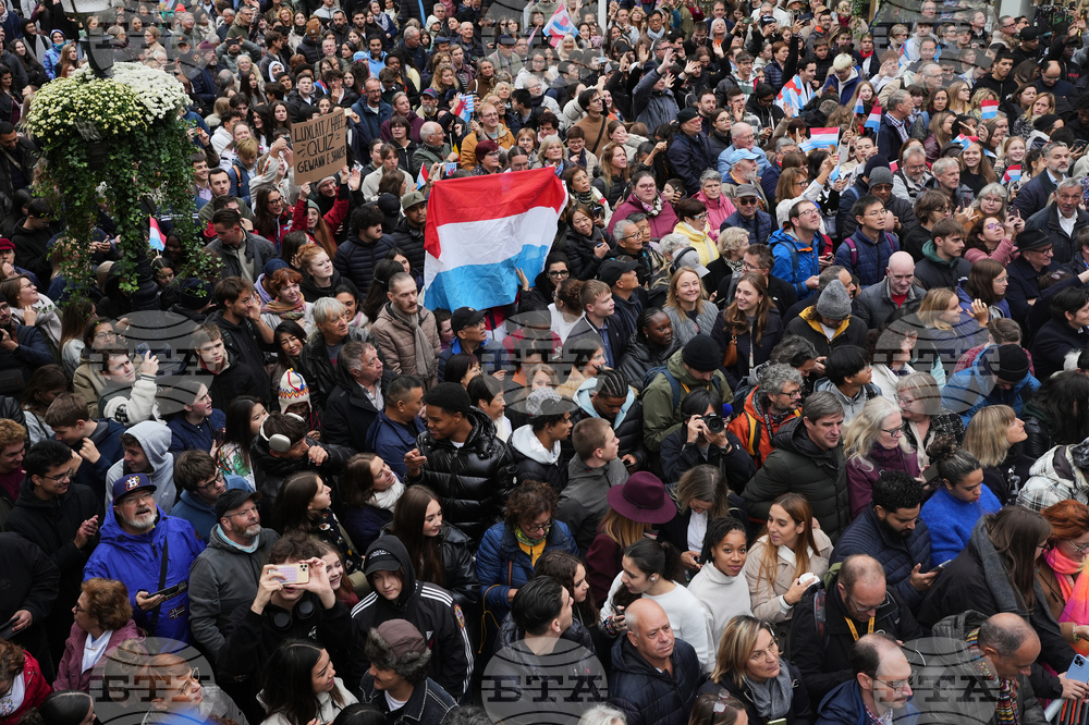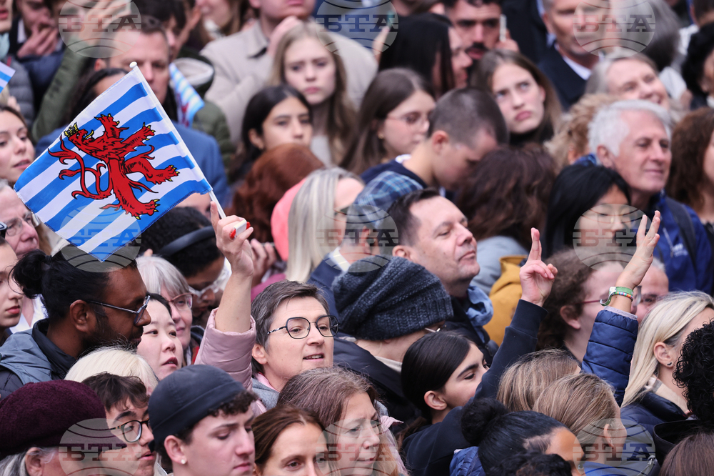 The general publlic stand in front of the Grand Ducal Palace during the abdication and enthronement ceremonies of the Grand Duke of Luxembourg in Luxembourg, Friday, Oct. 3, 2025. (AP Photo/Omar Havana)