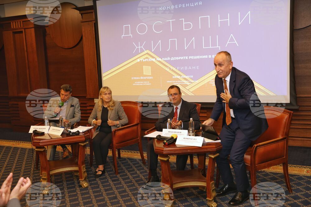 София (3 октомври 2025) В „Гранд хотел София" се провежда конференция „Достъпни жилища: В търсене на най-добрите решения в Европа". В събитието участват журналистът Георги Любенов, организаторът на форума евродепутатът Елена Йончева, министърът на регионалното развитие и благоустройството Иван Иванов и заместник-министърът на околната среда, градоустройството и климатичните промени на Република Турция Йомер Булут.