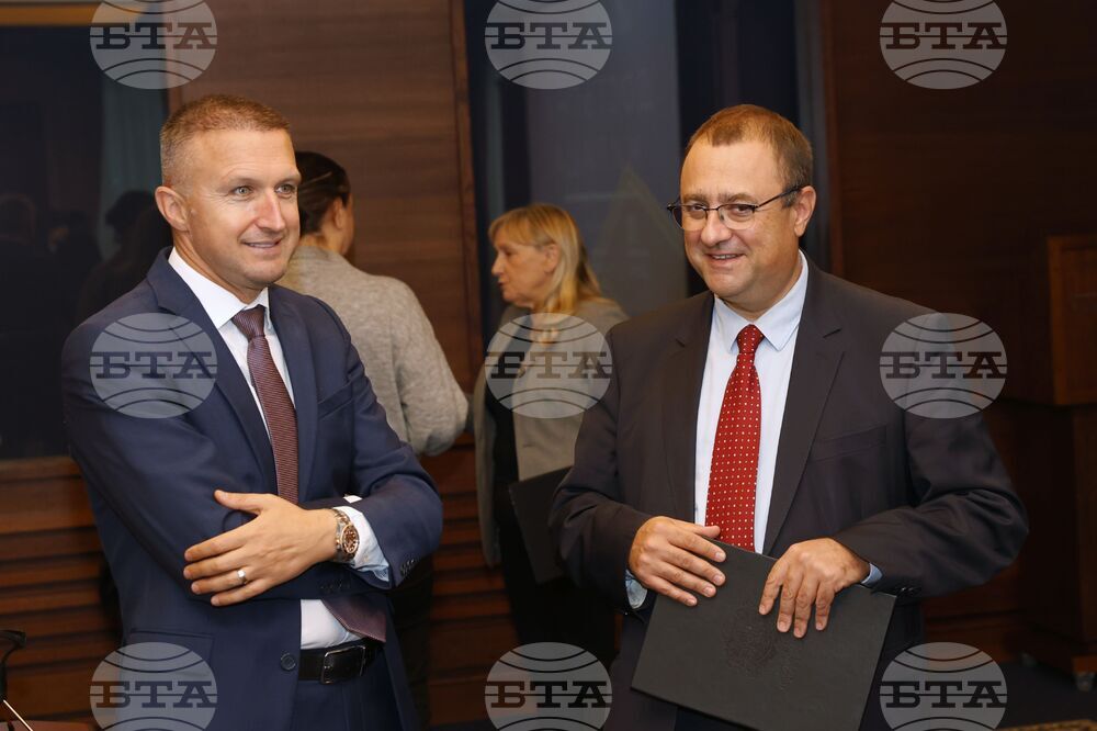 София (3 октомври 2025) В „Гранд хотел София" се провежда конференция „Достъпни жилища: В търсене на най-добрите решения в Европа". На снимката: министърът на регионалното развитие и благоустройството Иван Иванов и заместник-министърът на околната среда, градоустройството и климатичните промени на Република Турция Йомер Булут (вляво).