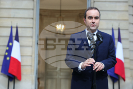 French Prime Minister Sebastien Lecornu delivers a statement at the Hotel Matignon in Paris, Friday Oct. 3, 2025, before a round of consultations with political parties ahead of the announcement of the new government. (Alain Jocard, Pool Photo via AP)