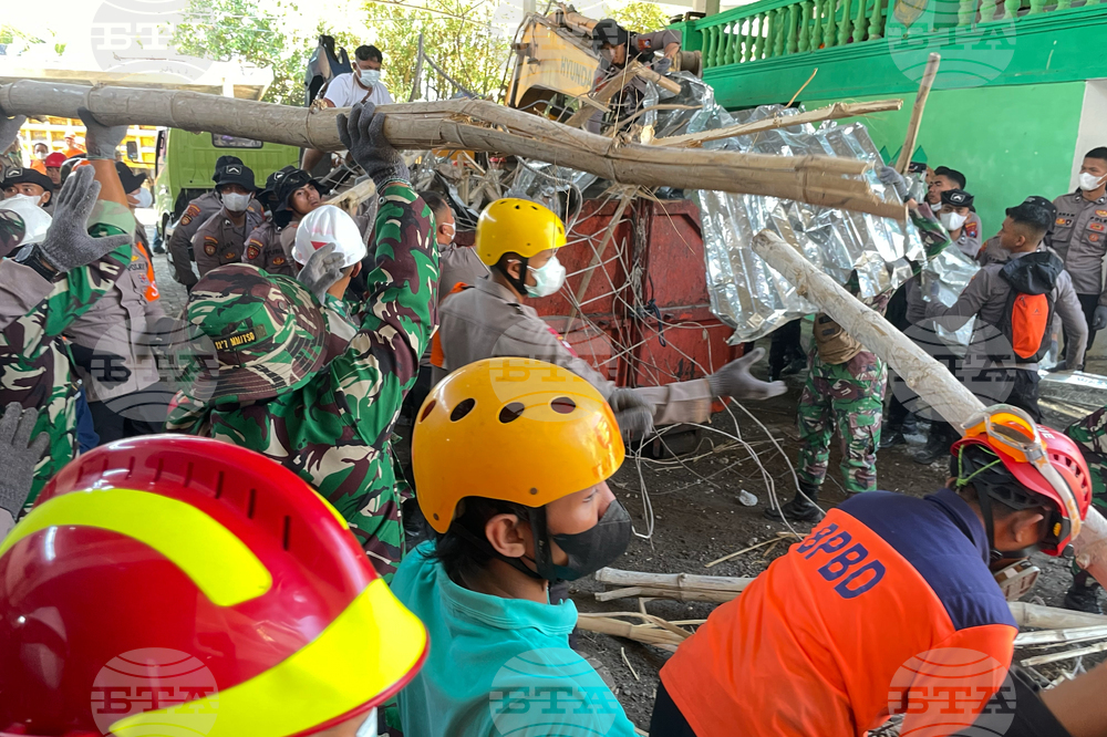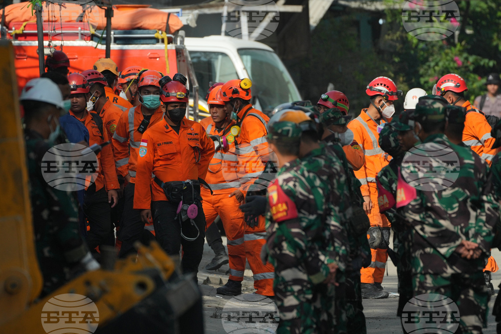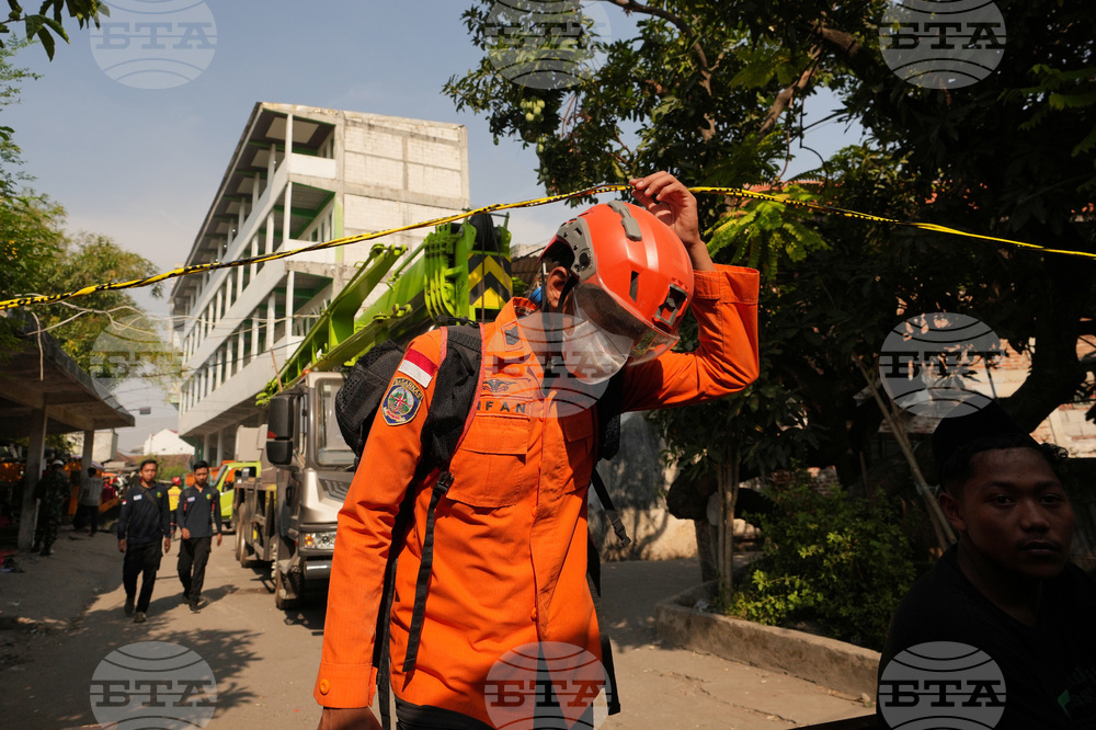 Rescuers clear debris from the site of a building that collapsed at an Islamic boarding school during the search for victims in Sidoarjo, East Java, Indonesia, Saturday, Oct. 4, 2025. (AP Photo/Trisnadi)