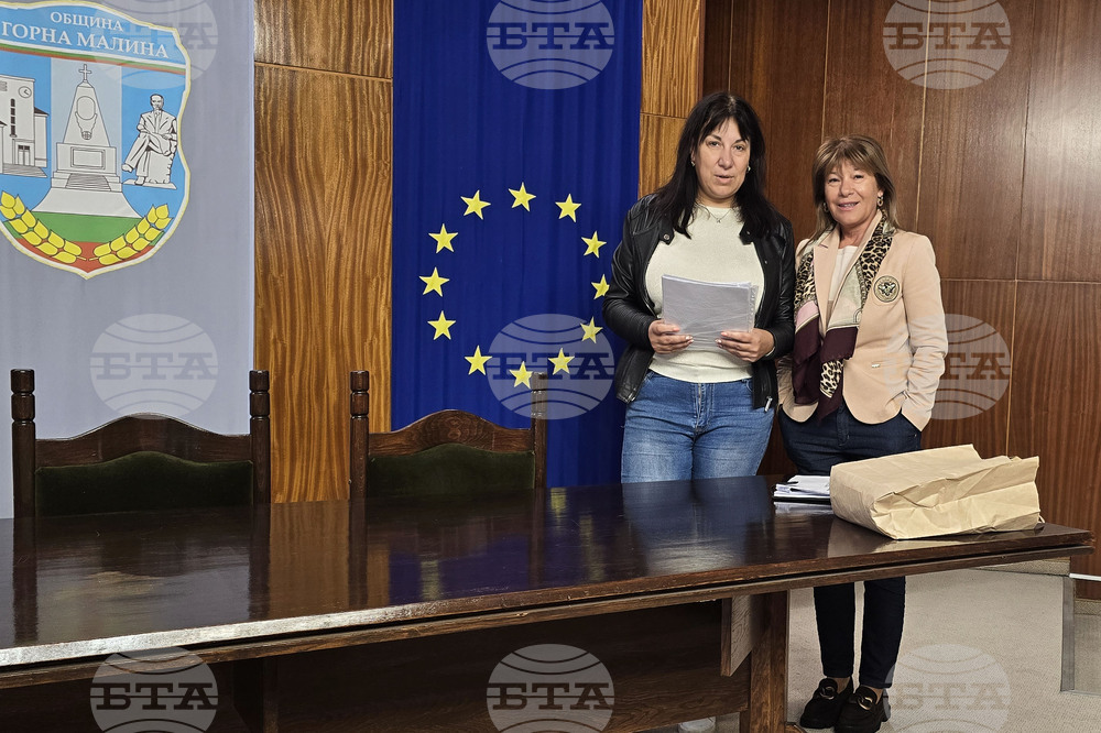 Горна Малина (3 октомври 2025) Разяснителната кампания на Комисията за защита на потребителите (КЗП) във връзка с приемане на еврото в България се провежда в зала в общината в Горна Малина. На снимката: експертът от КЗП Жанета Садразанова и директорът офис НАП - София Валя Крумова (вдясно).