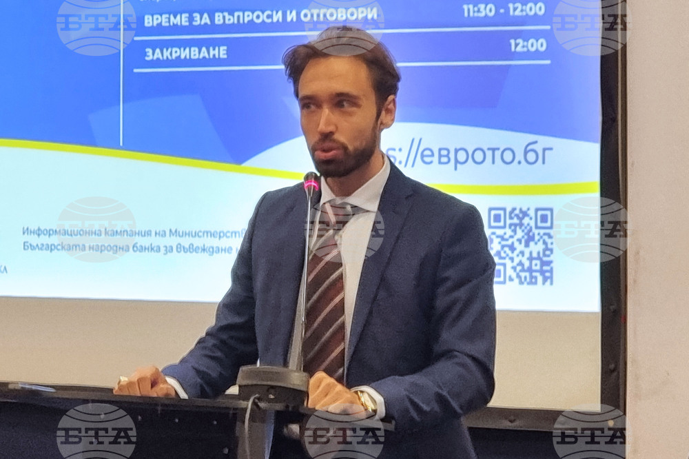 Сливен (3 октомври 2025) Информационна среща за въвеждането на еврото в България се провежда в Сливен. На снимката: Данаил Йорданов, експерт МФ.