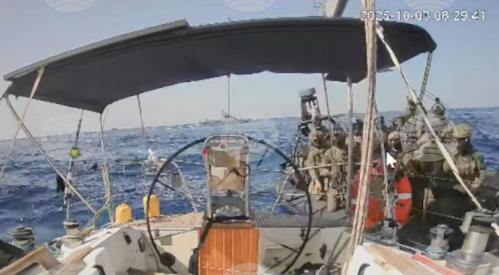 This frame grab from video released by the Global Sumud Flotilla shows Israeli forces intercepting 'Marinette', the last boat from an international flotilla trying to break Israel's sea blockade, Friday, Oct. 3, 2025. (Global Sumud Flotilla via AP)