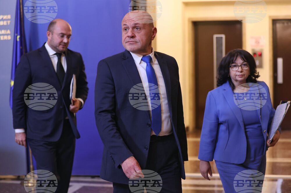 София (3 октомври 2025) Вицепремиерът Томислав Дончев, министърът на финансите Теменужка Петкова и министърът на правосъдието Георги Георгиев (вдясно) дават пресконференция в Министерски съвет.