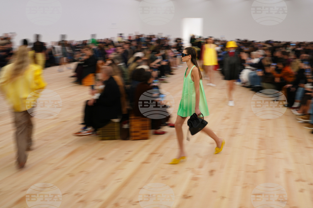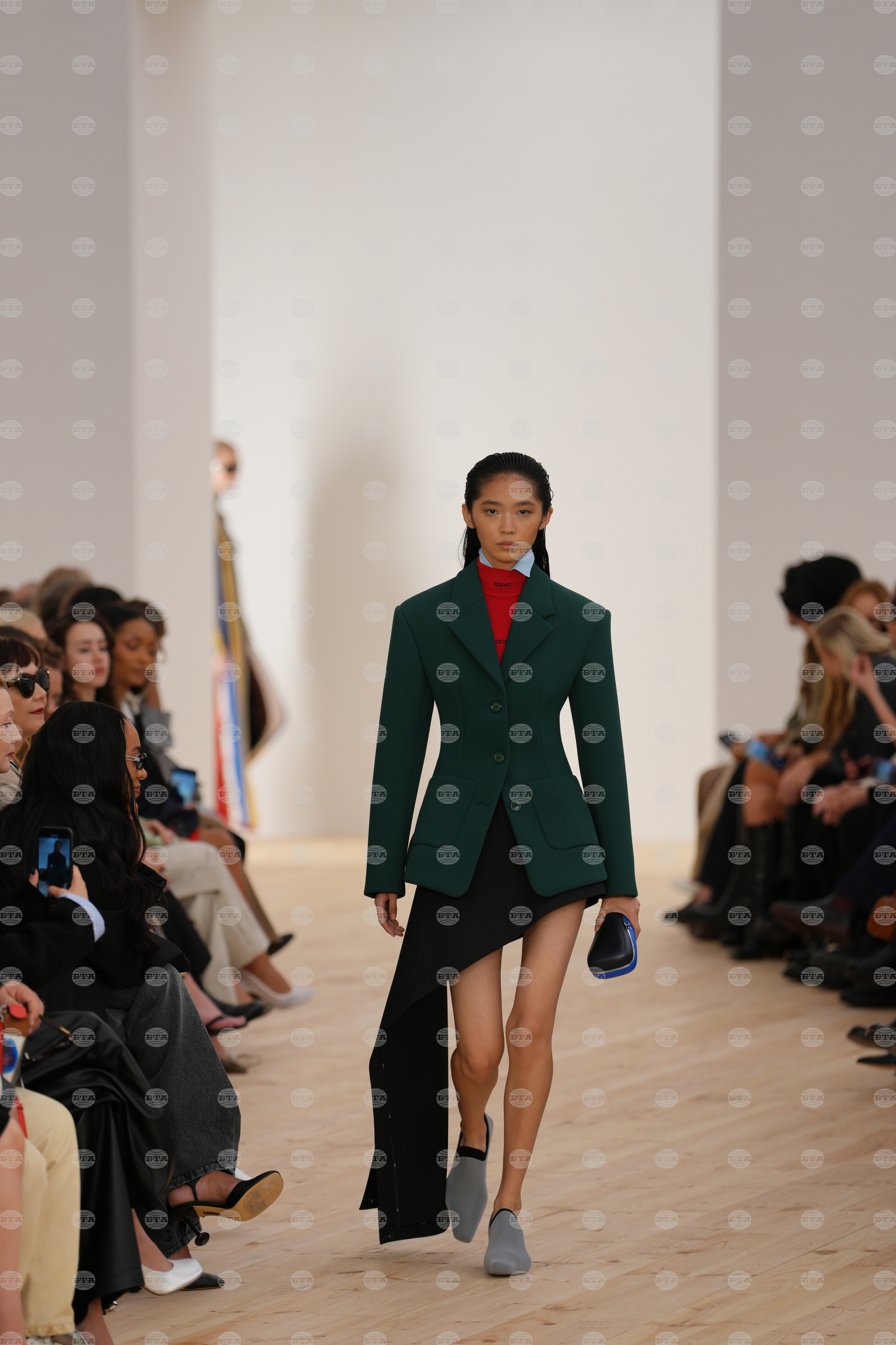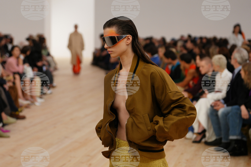A model wears a creation as part of the Loewe Spring/Summer 2026 collection presented in Paris, Friday, Oct. 3, 2025. (AP Photo/Aurelien Morissard)