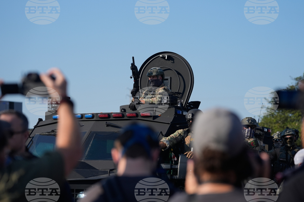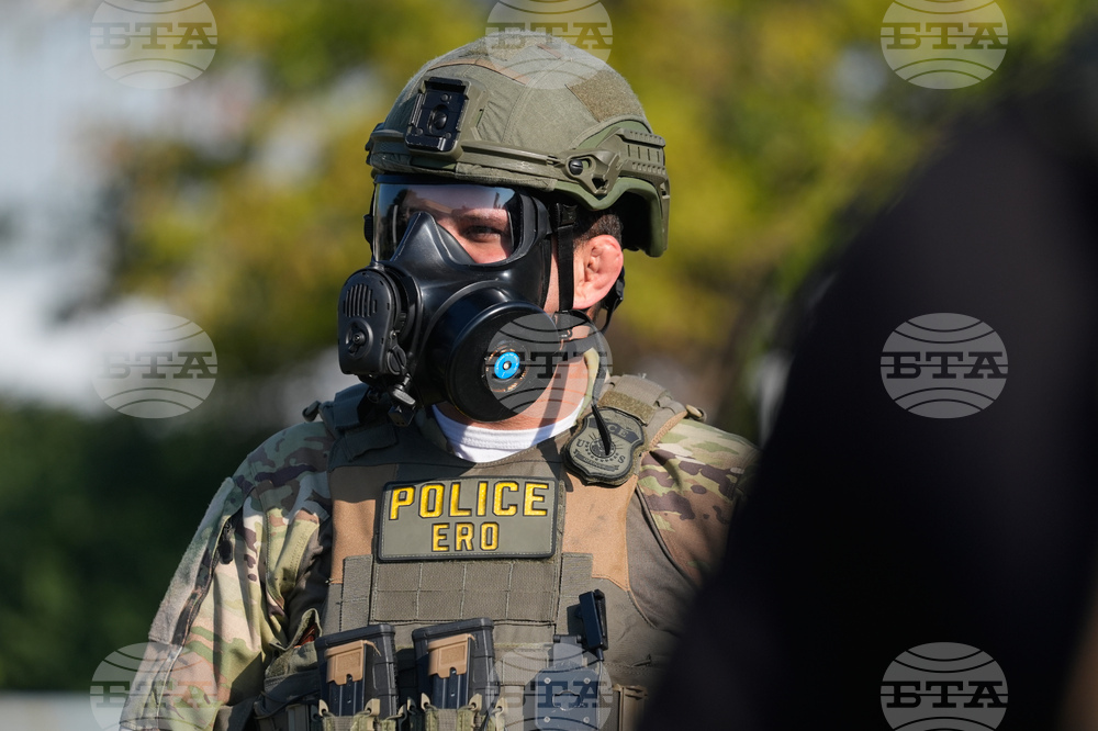 Federal law enforcement arrive near an Immigration and Customs Enforcement facility in Broadview, Ill., Friday, Oct. 3, 2025. (AP Photo/Erin Hooley)