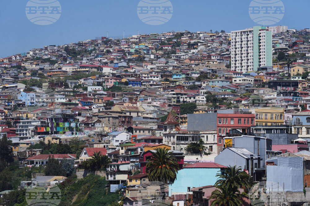 Houses dot the hills of Valparaiso, Chile, during the FIFA U-20 World Cup, on Tuesday, Sept. 30, 2025. (AP Photo/Andre Penner)