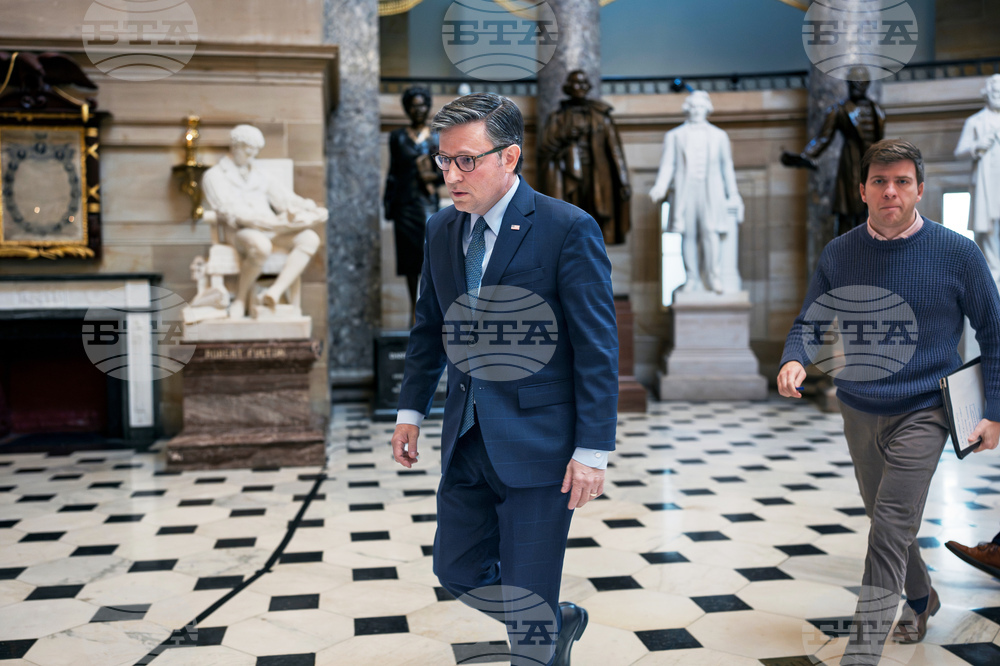 Speaker of the House Mike Johnson, R-La., rushes through Statuary Hall on the third day of the government shutdown, at the Capitol in Washington, Friday, Oct. 3, 2025. (AP Photo/J. Scott Applewhite)