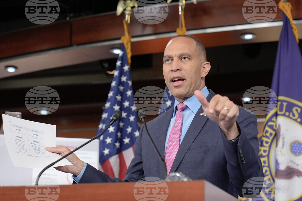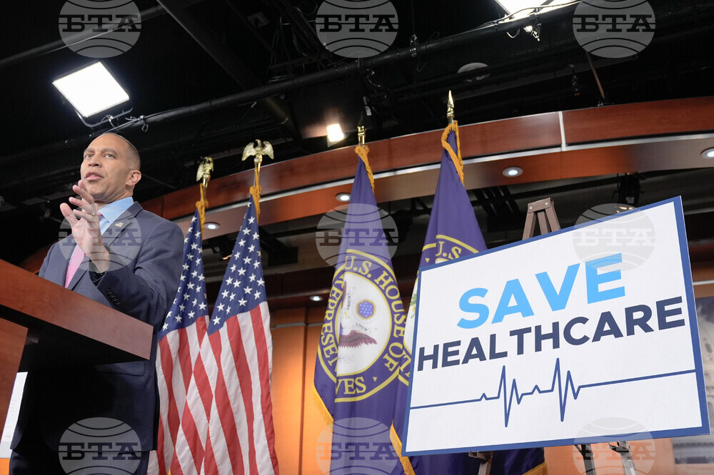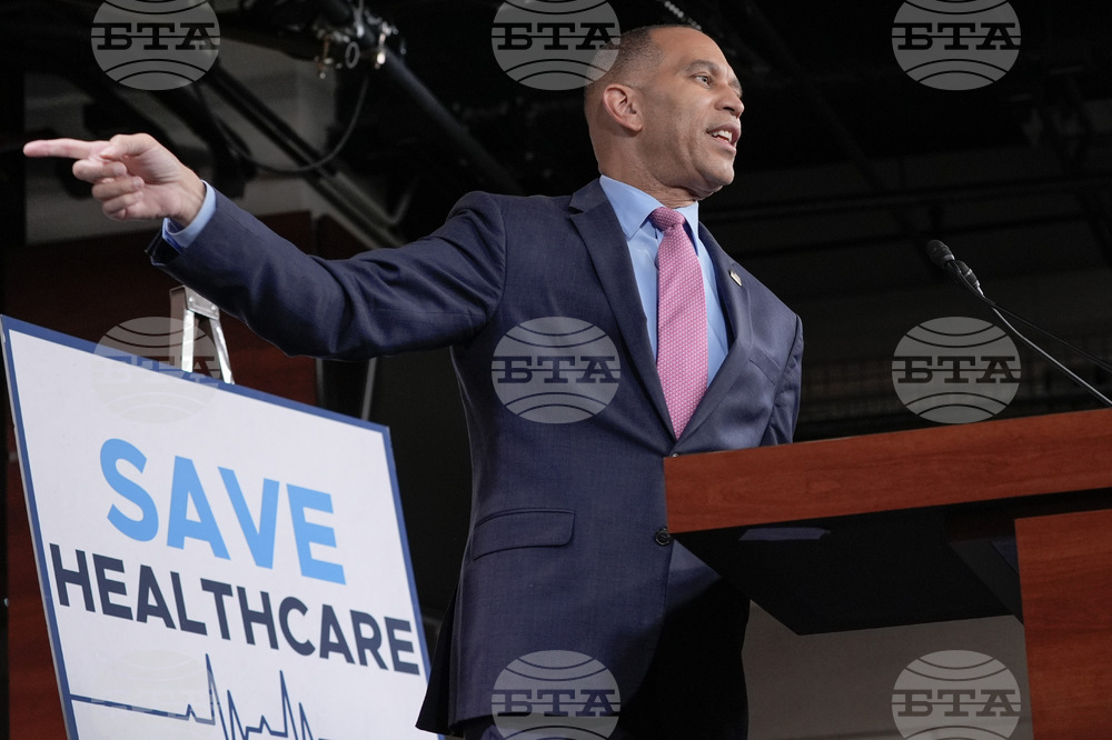 House Minority Leader Hakeem Jeffries, D-N.Y., speaks during a news conference during day 3 of the government shutdown on Capitol Hill, Friday, Oct. 3, 2025, in Washington. (AP Photo/Mariam Zuhaib)