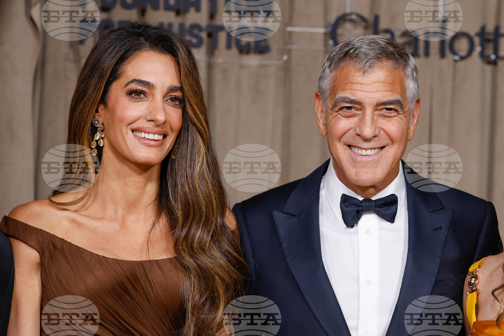 George Clooney, left, and Amal Clooney pose for photographers upon arrival at The Albies on Friday, Oct. 3, 2025, in London. (Photo by Millie Turner/Invision/AP)