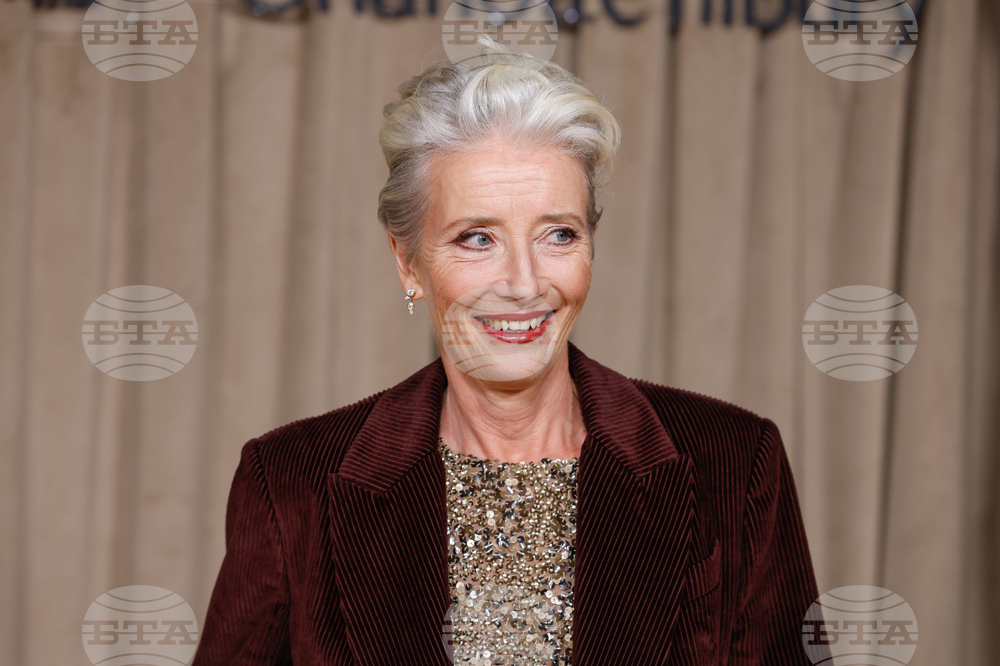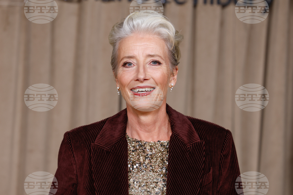 Emma Thompson poses for photographers upon arrival at The Albies on Friday, Oct. 3, 2025, in London. (Photo by Millie Turner/Invision/AP)
