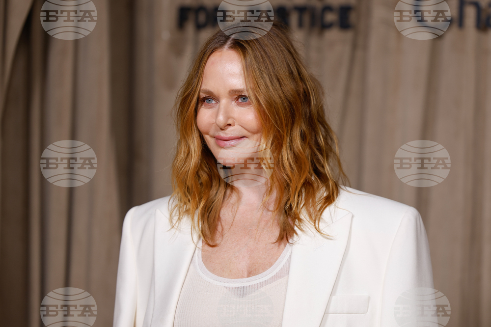 Stella McCartney poses for photographers upon arrival at The Albies on Friday, Oct. 3, 2025, in London. (Photo by Millie Turner/Invision/AP)