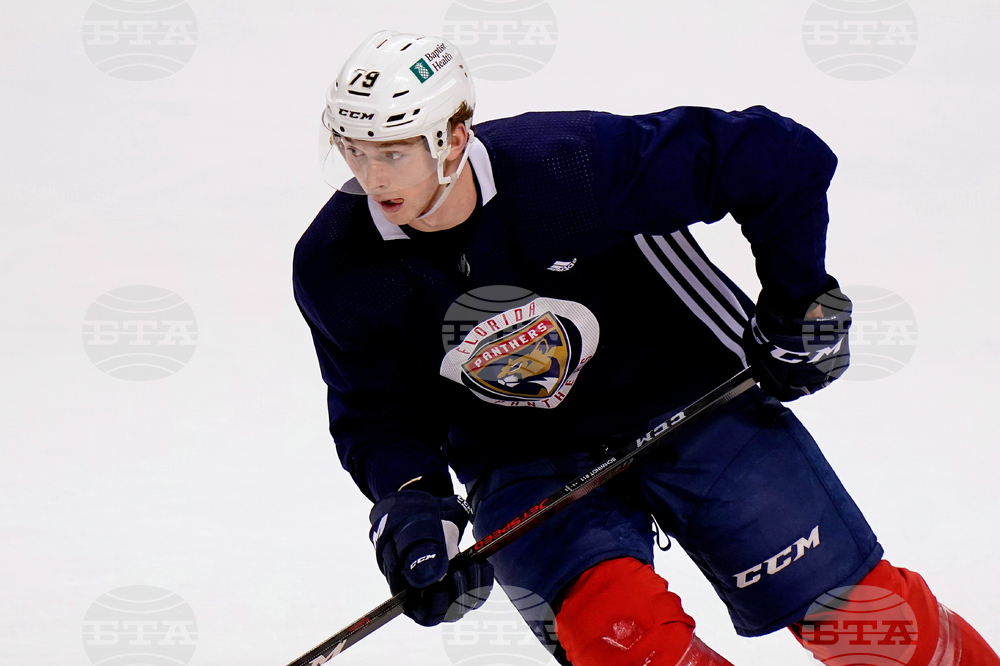 FILE - Florida Panthers forward Cole Schwindt skates during NHL hockey training camp, Tuesday, Jan. 5, 2021, in Sunrise, Fla. (AP Photo/Lynne Sladky, File)