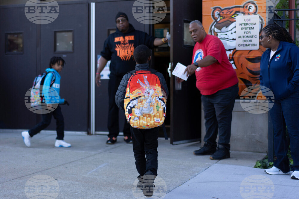 FILE - Students are guided inside as they arrive for school at Nash Elementary School, Friday, Sept. 5, 2025, in Chicago. (AP Photo/Carolyn Kaster, File)