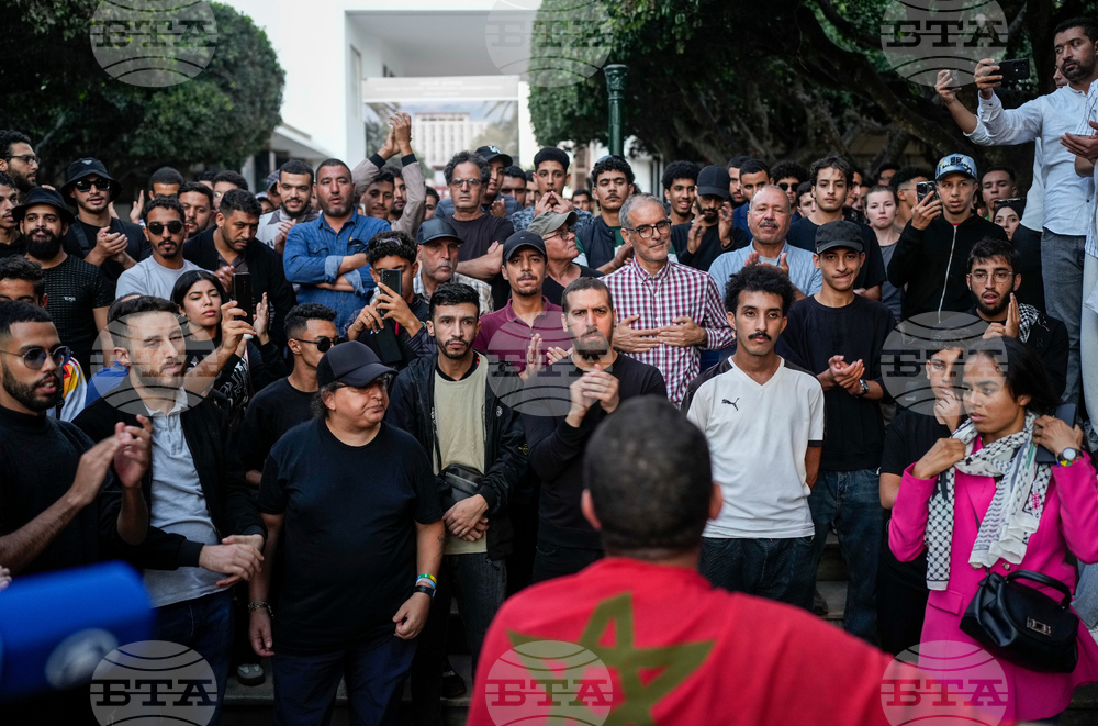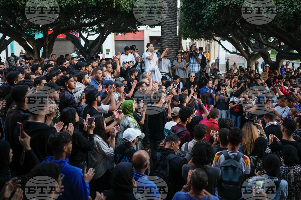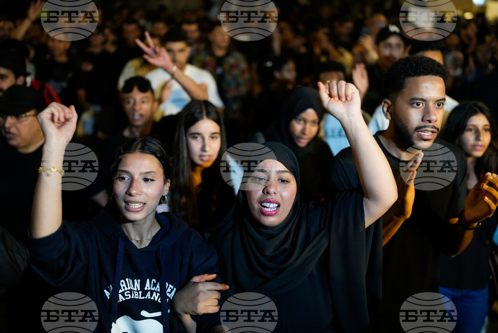 People take part in a youth-led protest against corruption and calling for healthcare and education reform in Rabat, Morocco, Friday, Oct. 3, 2025. (AP Photo/Mosa'ab Elshamy)