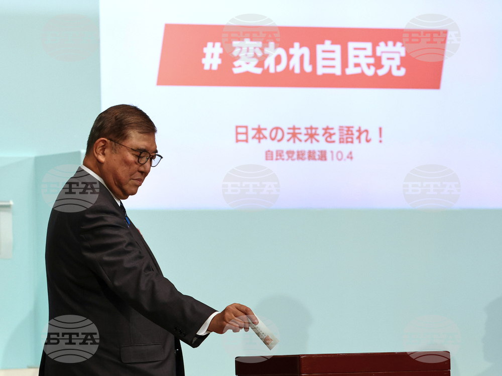 Japan's Prime Minister Shigeru Ishiba votes at the Liberal Democratic Party's (LDP) leade rship election in Tokyo, Japan, Saturday, Oct. 4, 2025. (Kim Kyung-Hoon/Pool Photo via AP)