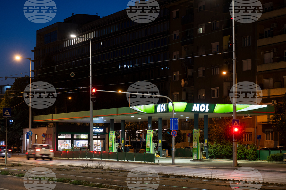 A general view of MOL gas station in downtown Budapest, Hungary, on Sept. 27, 2025. (AP Photo/Denes Erdos)