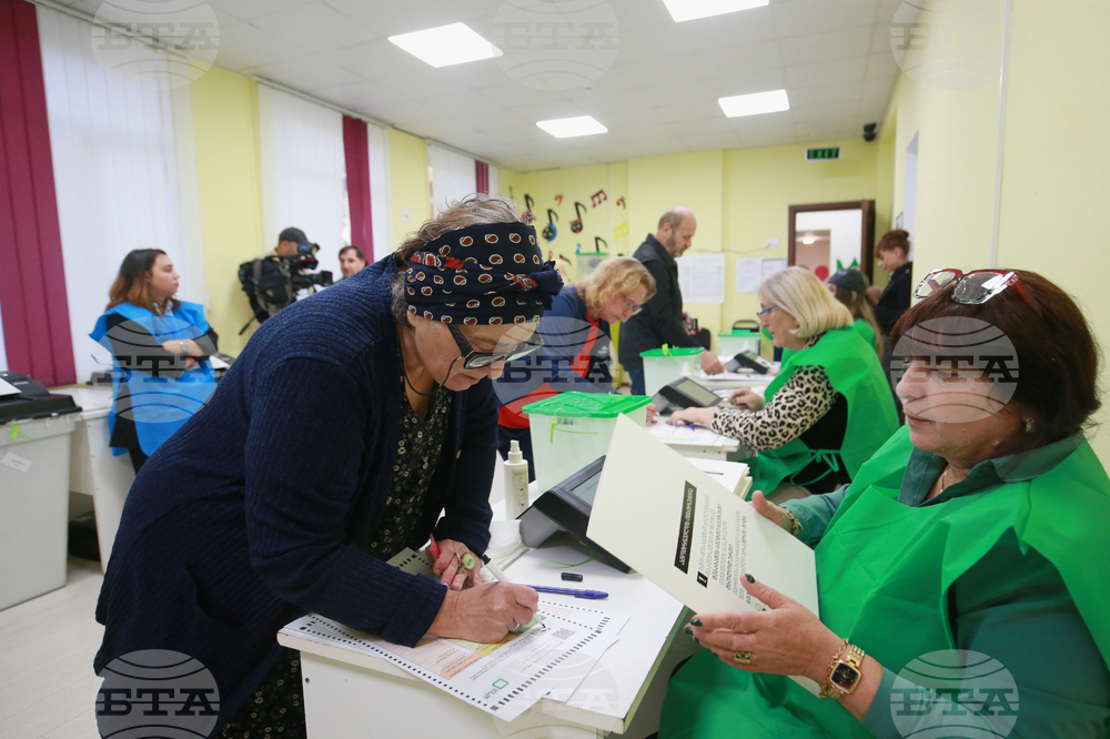 A woman gets her ballot for voting at a polling station during the municipal elections in Tbilisi, Georgia, on Saturday, Oct. 4, 2025. (AP Photo/Zurab Tsertsvadze)
