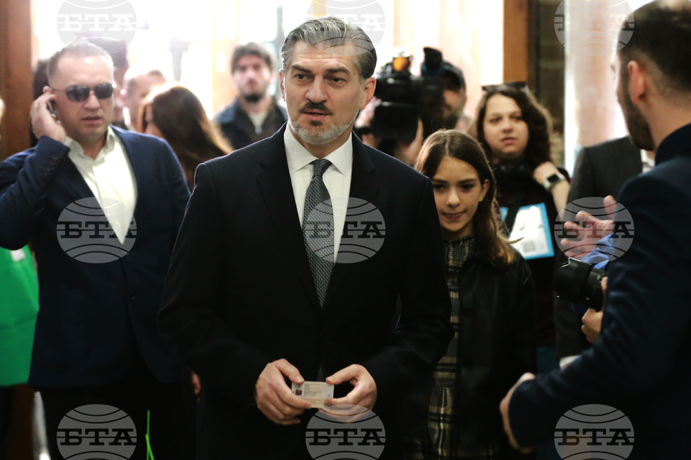 Georgian President Mikheil Kavelashvili, center, arrives to vote at a polling station during the municipal elections in Tbilisi, Georgia, on Saturday, Oct. 4, 2025. (AP Photo/Zurab Tsertsvadze)