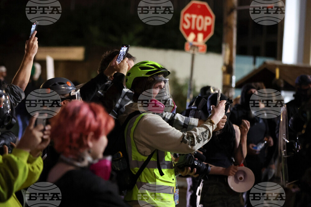 People film as federal agents walk into the street during a protest outside a U.S. Immigration and Customs Enforcement facility in Portland, Oregon, Friday, Oct. 3, 2025. (AP Photo/Amanda Loman)