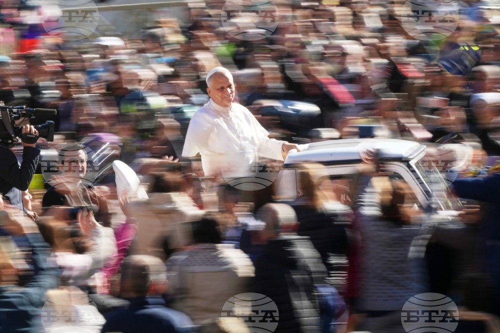 Pope Leo XIV arrives to hold an audience with the participants of the Jubilee of Missionaries and Migrants, at the Vatican, Saturday, Oct. 4, 2025. (AP Photo/Andrew Medichini)