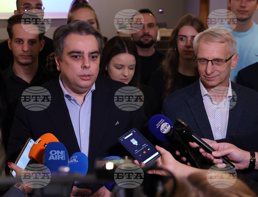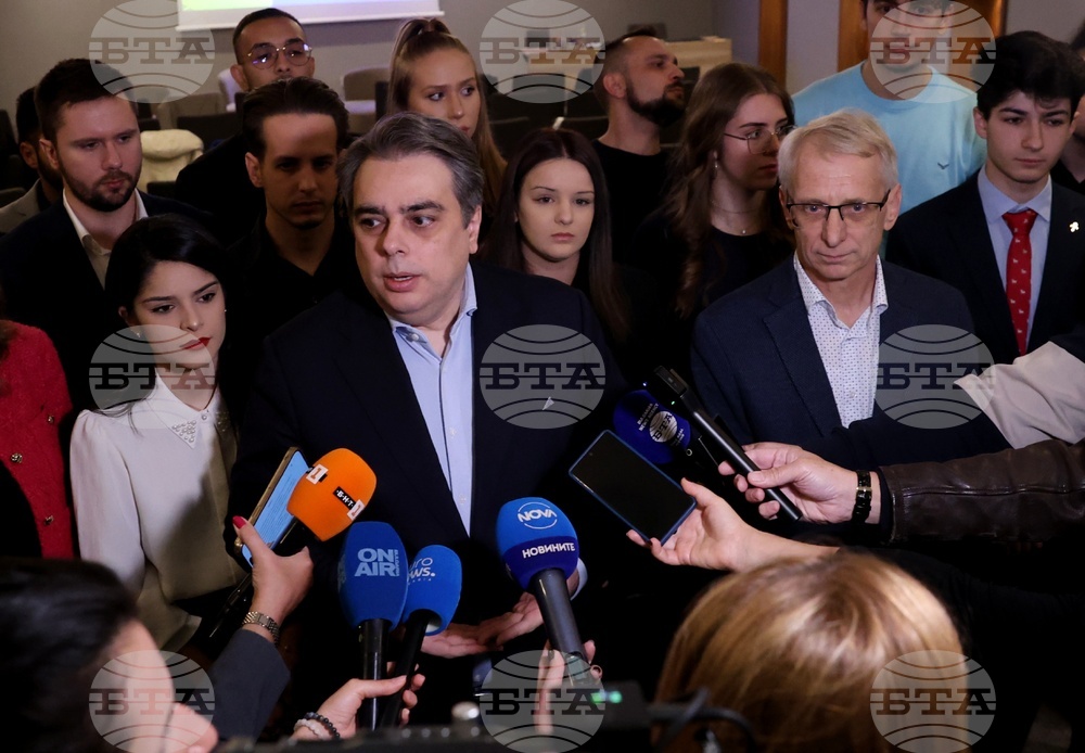 София (4 октомври 2025) От ПП „Продължаваме Промяната" дават изявление пред медиите след събрание на младежката структура на формацията в хотел “Интеконтинетал”. На снимката (от ляво надясно): председателят на „Продължаваме Промяната“ (ПП) Асен Василев и народният представител и член на Изпълнителния съвет на „Продължаваме Промяната“ Николай Денков.