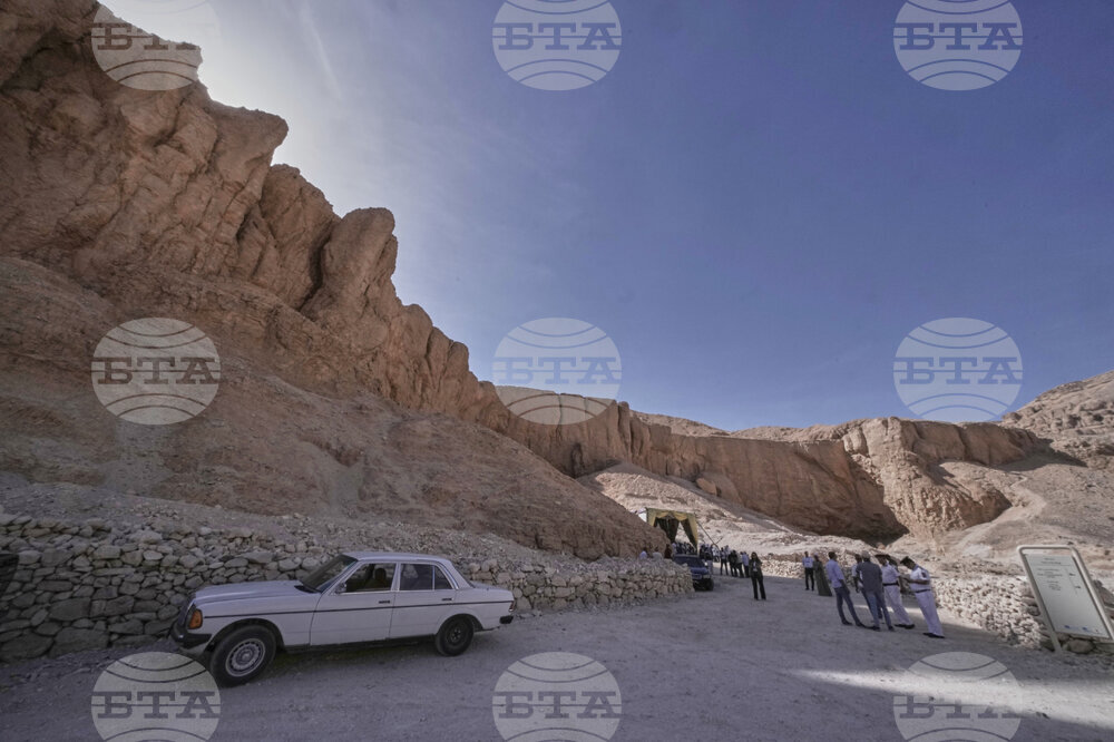 The sun rises over the tomb of Amenhotep III, who ruled ancient Egypt between 1390 B.C. and 1350 B.C., in the Valley of Kings in the southern city of Luxor, Egypt, Saturday, Oct. 4, 2025, as it opened to visitors for the first time in more than two decades. (AP Photo/Amr Nabil)