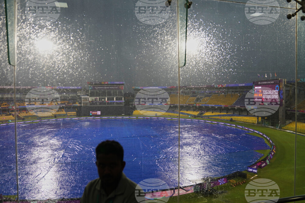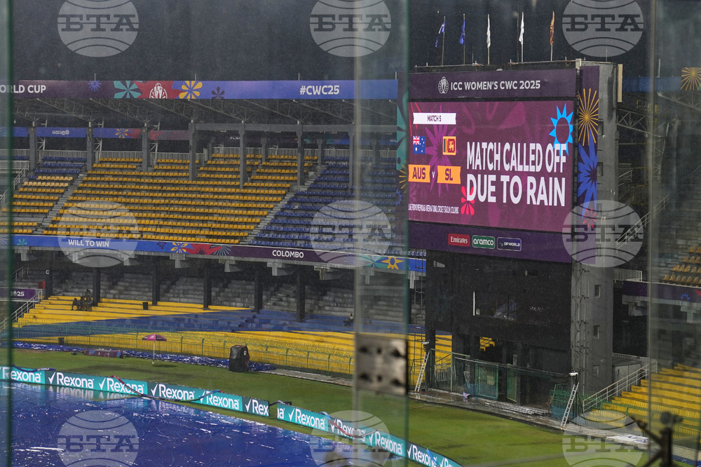 Photo shows the covered field of Premadasa Stadium after the ICC Women's Cricket World Cup match between Australia and Sri Lanka called off due to rain in Colombo, Sri Lanka, on Saturday, October 4, 2025. ( AP Photo/ Eranga Jayawardena)