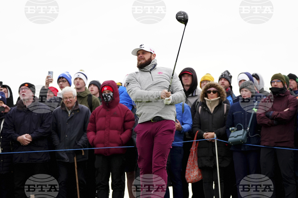 England's Tyrrell Hatton on the 7th tee during day three of the 2025 Alfred Dunhill Links Championship at the Old Course St. Andrews, Scotland, Saturday Oct. 4, 2025. (Jane Barlow/PA via AP)