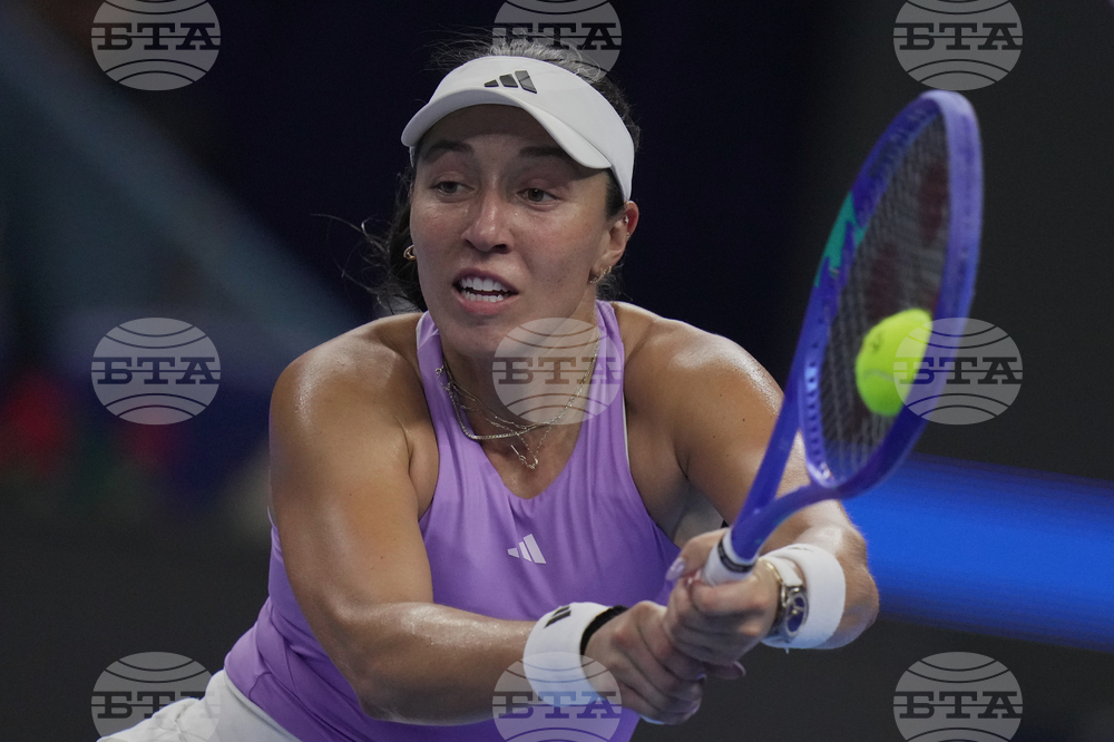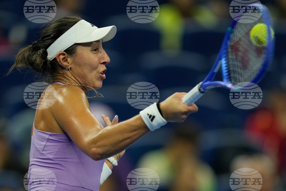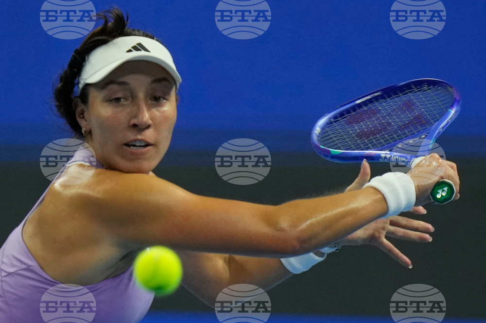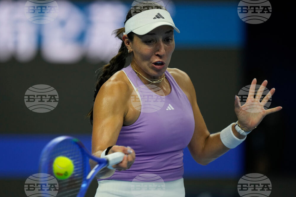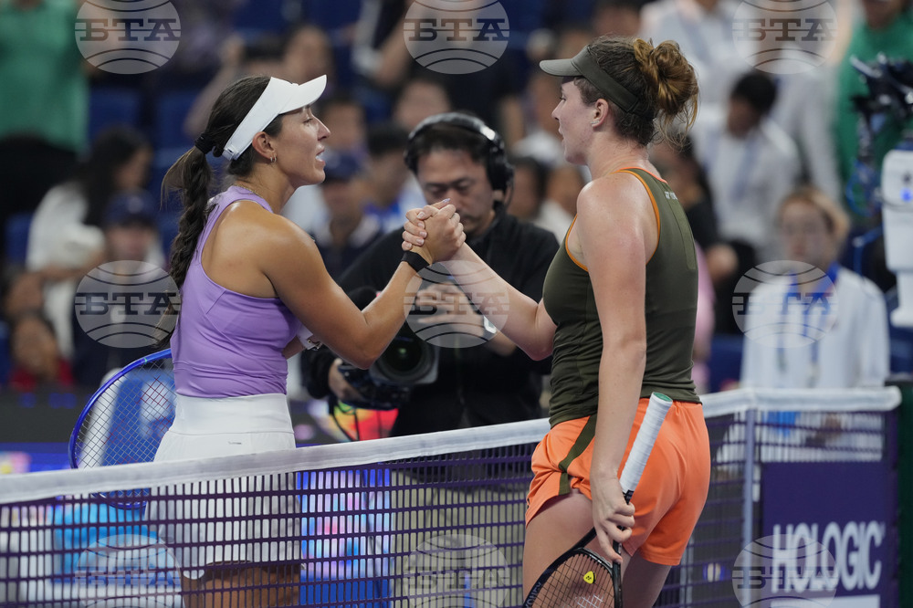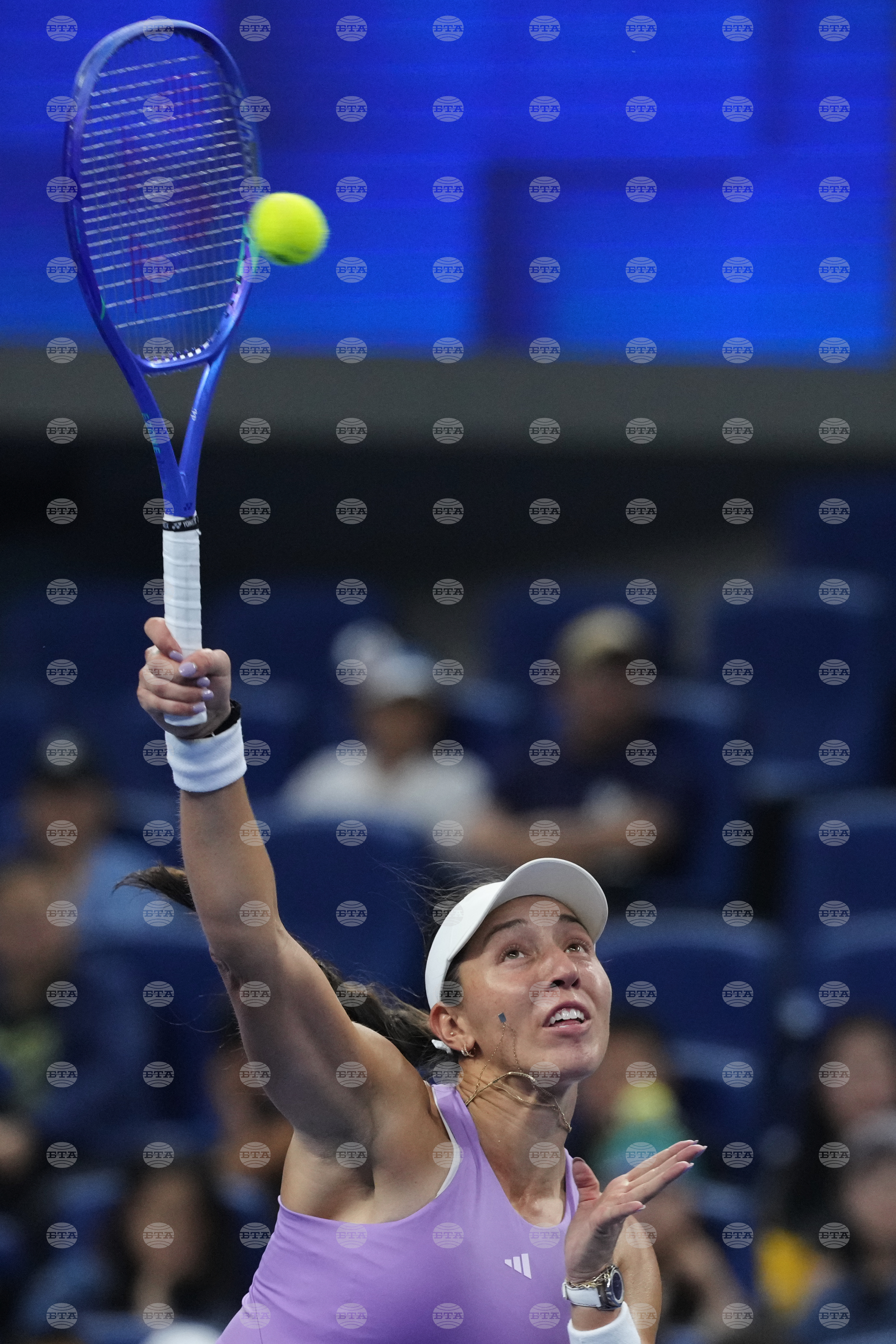 Jessica Pegula, of the United States returns a backhand shot from Linda Noskova, of the Czech Republic during the women's singles semifinals match of the China Open tennis tournament, at the National Tennis Center, in Beijing, Saturday, Oct. 4, 2025. (AP Photo/Andy Wong)