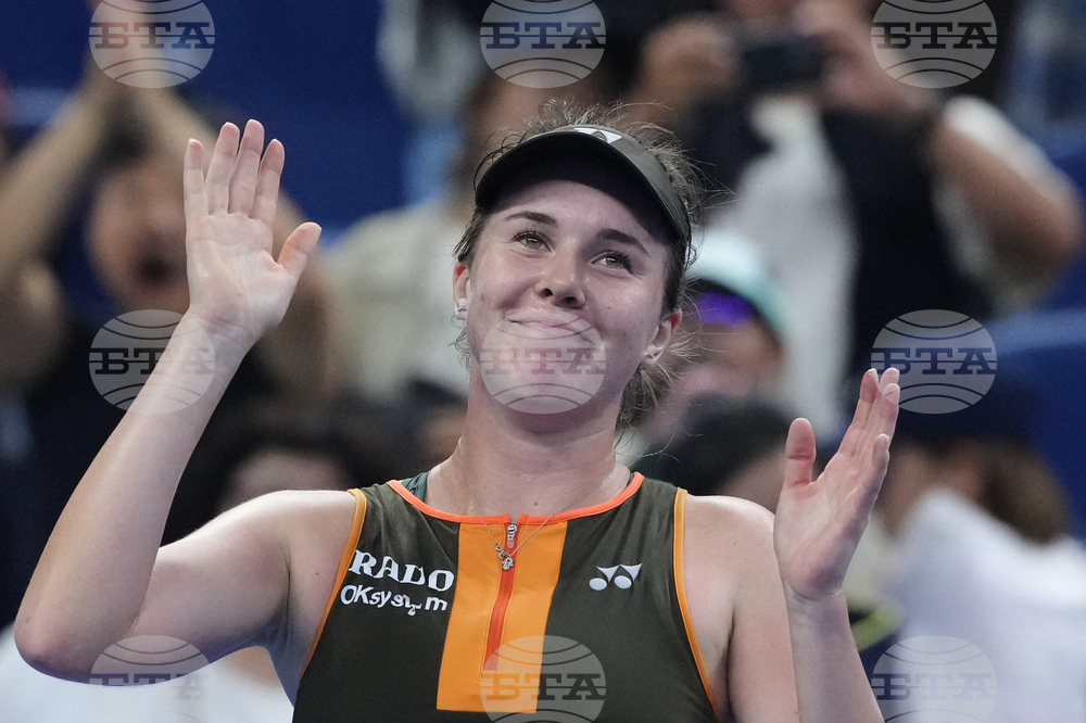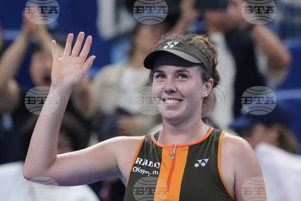 Linda Noskova, of the Czech Republic celebrates after defeating Jessica Pegula, of the United States in the women's singles semifinals match of the China Open tennis tournament, at the National Tennis Center, in Beijing, Saturday, Oct. 4, 2025. (AP Photo/Andy Wong)