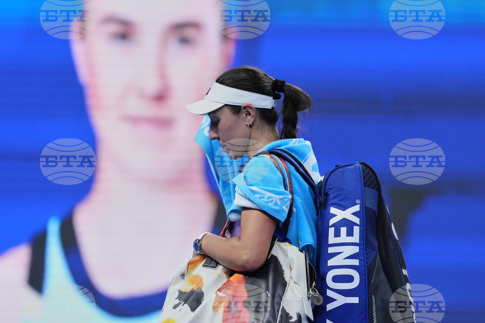 Jessica Pegula of the United States leaves after losing to Linda Noskova of the Czech Republic in a women's singles semifinal match of the China Open tennis tournament in Beijing, China, Saturday, Oct. 4, 2025.(AP Photo/Ng Han Guan)