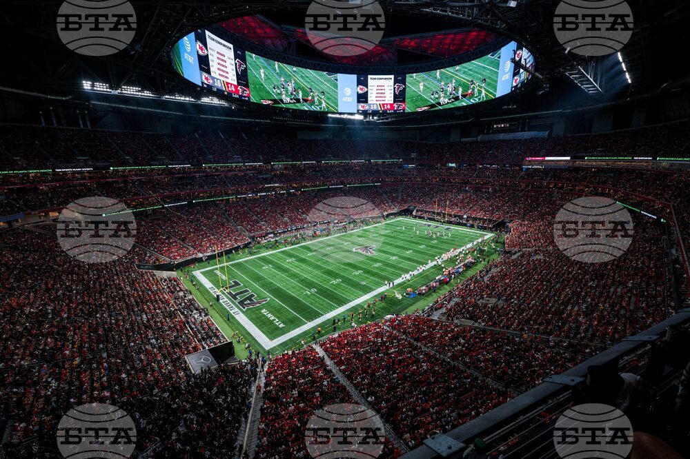 FILE - Fans watch action at the Mercedes-Benz Stadium during an NFL football game between the Atlanta Falcons and the Kansas City Chiefs, Sept. 22, 2024, in Atlanta. (AP Photo/Danny Karnik, File)