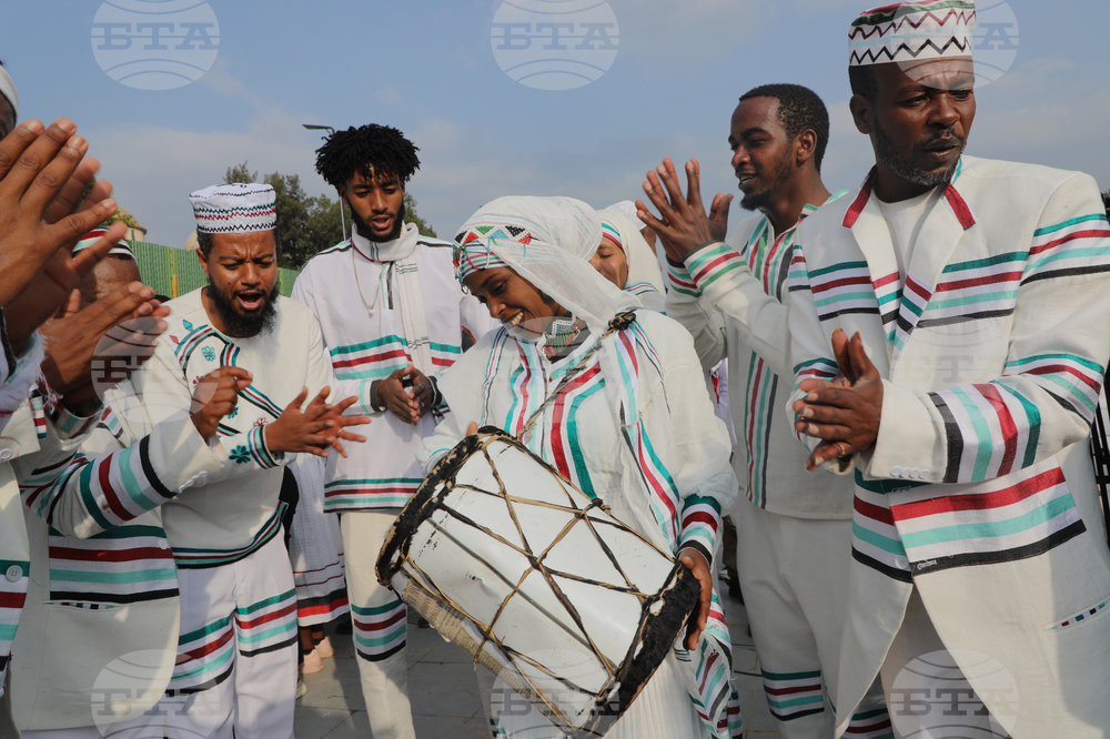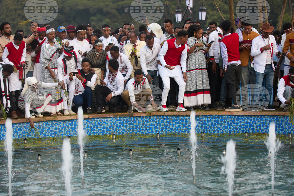 People attend the annual thanksgiving celebrations in Addis Ababa, Ethiopia, Saturday, Oct 4, 2025. (AP Photo/Amanuel Birhane)