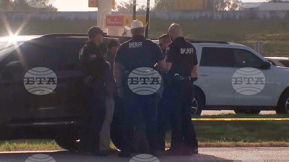 Law enforcement officials investigate a vehicle near the scene of a deadly shooting shooting early Saturday, Oct. 4, 2025 in the Houston suburb of Angleton, Texas. (KTRK via AP)