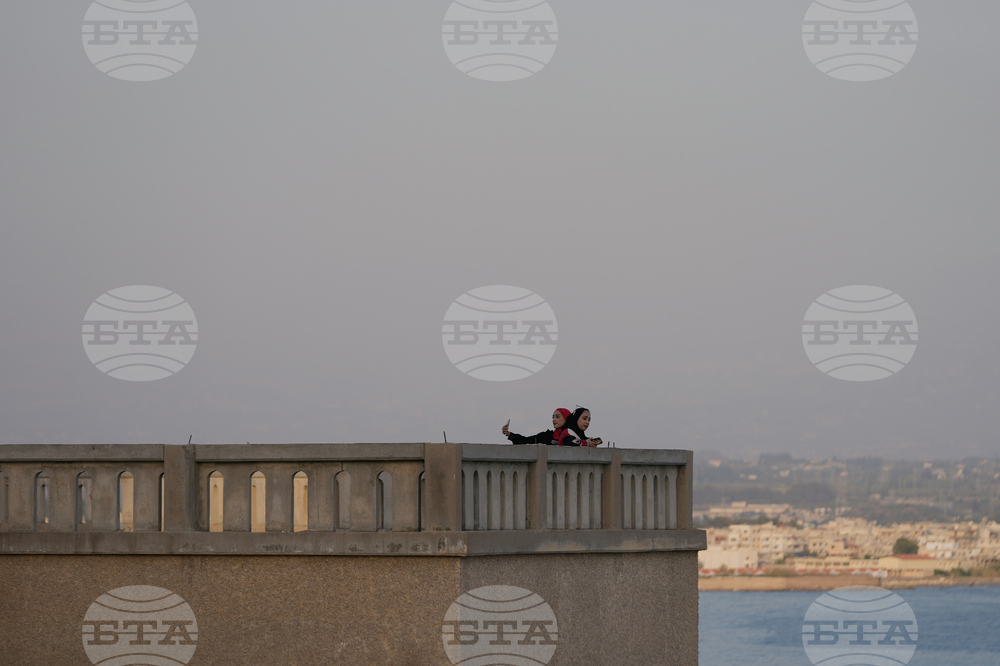 Syrian women enjoy the view on Latakia's Mediterranean seaside corniche, in the coastal city of Latakia, Syria, Saturday, Oct. 4, 2025. (AP Photo/Hussein Malla)