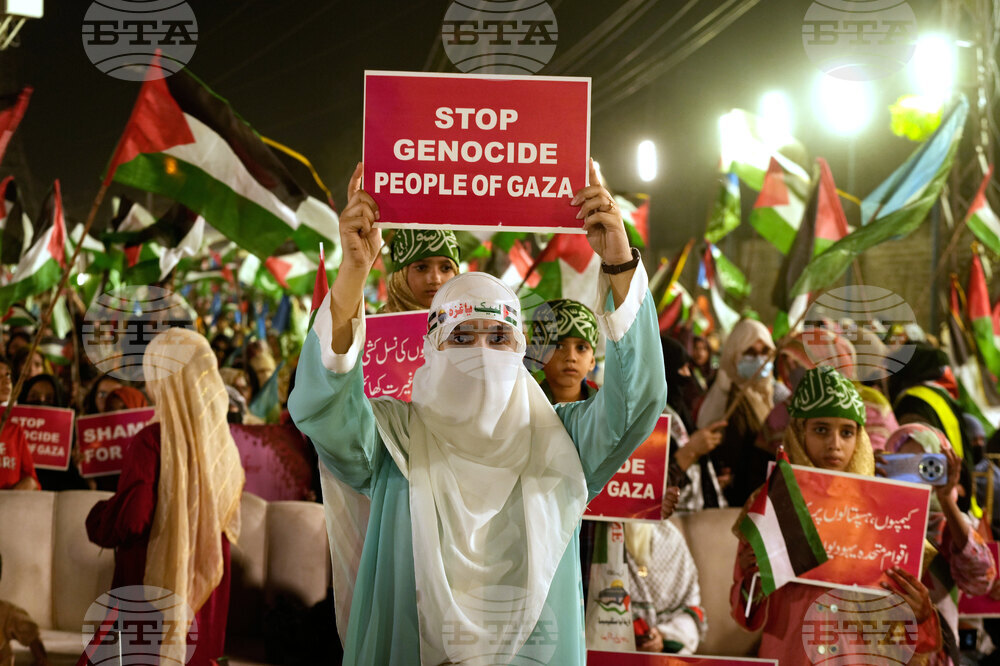 Supporters of the Pakistani religious group "Jamaat-e-Islami" participate in a march to show solidarity with Palestinian people living in Gaza, in Lahore, Pakistan, Saturday, Oct. 4, 2025. (AP Photo/K.M. Chaudary)