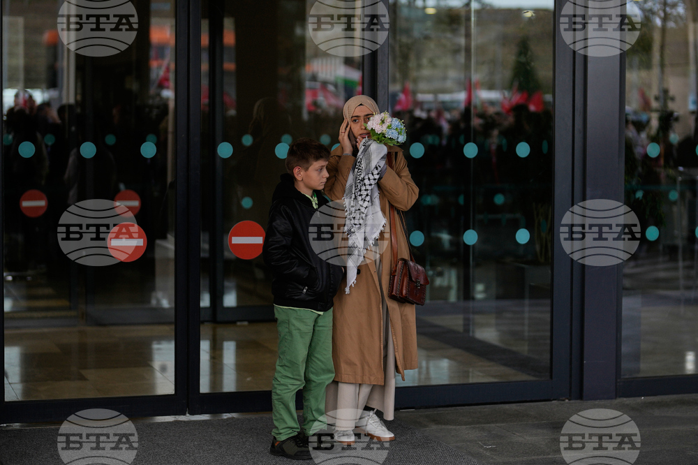 A woman holding flowers waits outside Istanbul Airport for the arrival of 137 activists from the Global Sumud Flotilla, in Istanbul, Turkey, Saturday, Oct. 4, 2025. (AP Photo/Khalil Hamra)