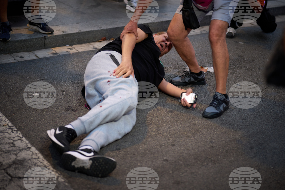 An injured man on the ground reacts during clashes between police and demonstrators at a pro-Palestinian rally in solidarity with the Global Sumud Flotilla after ships were intercepted by the Israeli navy, in Barcelona, Spain, Saturday, Oct. 4, 2025. (AP Photo/Emilio Morenatti)