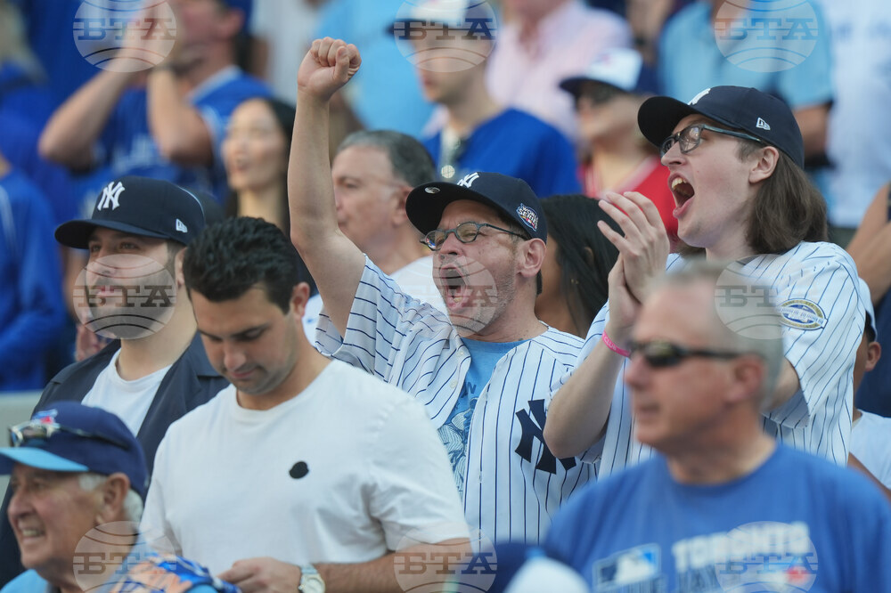 New York Yankees fans cheer before Game 1 of baseball's American League Division Series against the Toronto Blue Jays in Toronto, Saturday, Oct. 4, 2025. (Frank Gunn/The Canadian Press via AP)