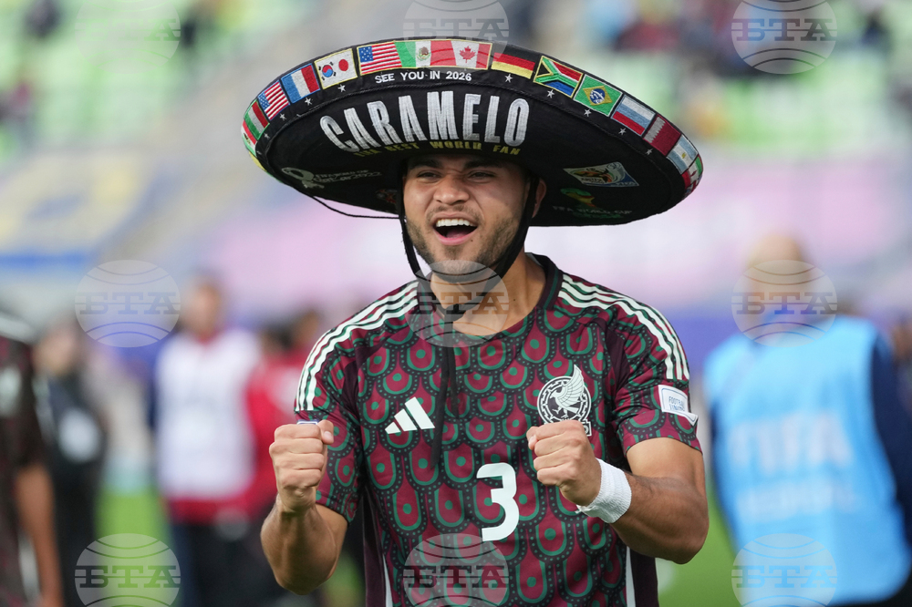 Mexico's Cesar Bustos (15) reacts at the end of a FIFA U-20 World Cup Group C soccer match against Morocco at Elias Figueroa Brander Stadium in Valparaiso, Chile, Saturday, Oct. 4, 2025. (AP Photo/Andre Penner)