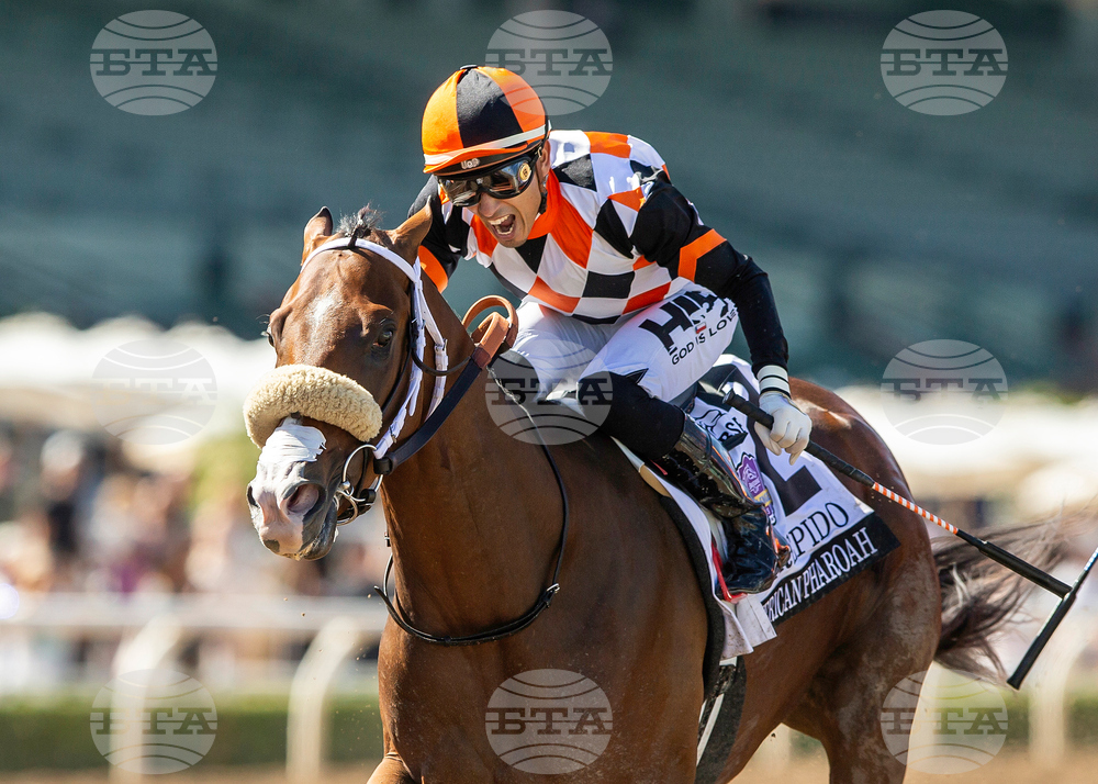 In this image provided by Benoit Photo, Intrepido, with Hector I. Berrios aboard, wins the Grade I, $300,000 American Pharoah Stakes horse race Saturday, Oct. 4, 2025, at Santa Anita Park in Arcadia, Calif. (Benoit Photo via AP)