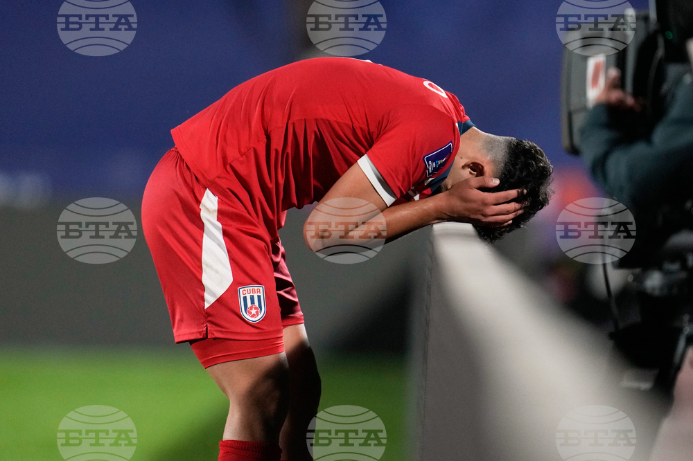 Cuba's Michael Camejo reacts after losing against Australia during a FIFA U-20 World Cup Group D soccer match at National Stadium in Santiago, Chile, Saturday, Oct. 4, 2025. (AP Photo/Matias Delacroix)