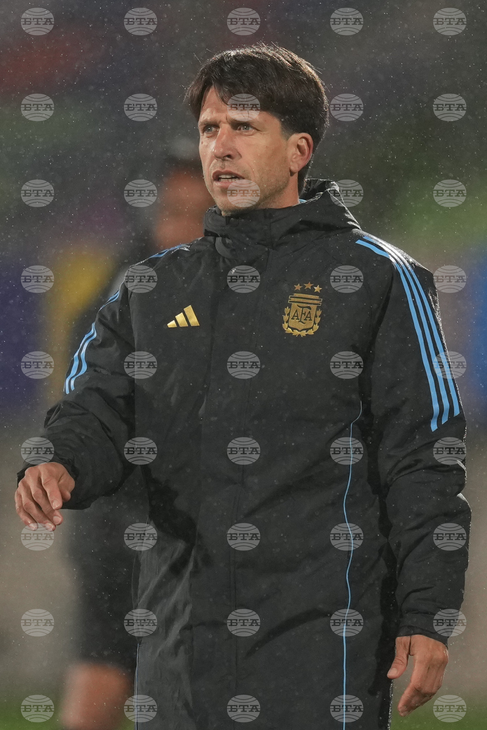Argentina's coach Diego Pacente looks on during a FIFA U-20 World Cup Group D soccer match against Italy at Elias Figuero Brander in Valparaiso, Chile, Saturday, Oct. 4, 2025. (AP Photo/Andre Penner)
