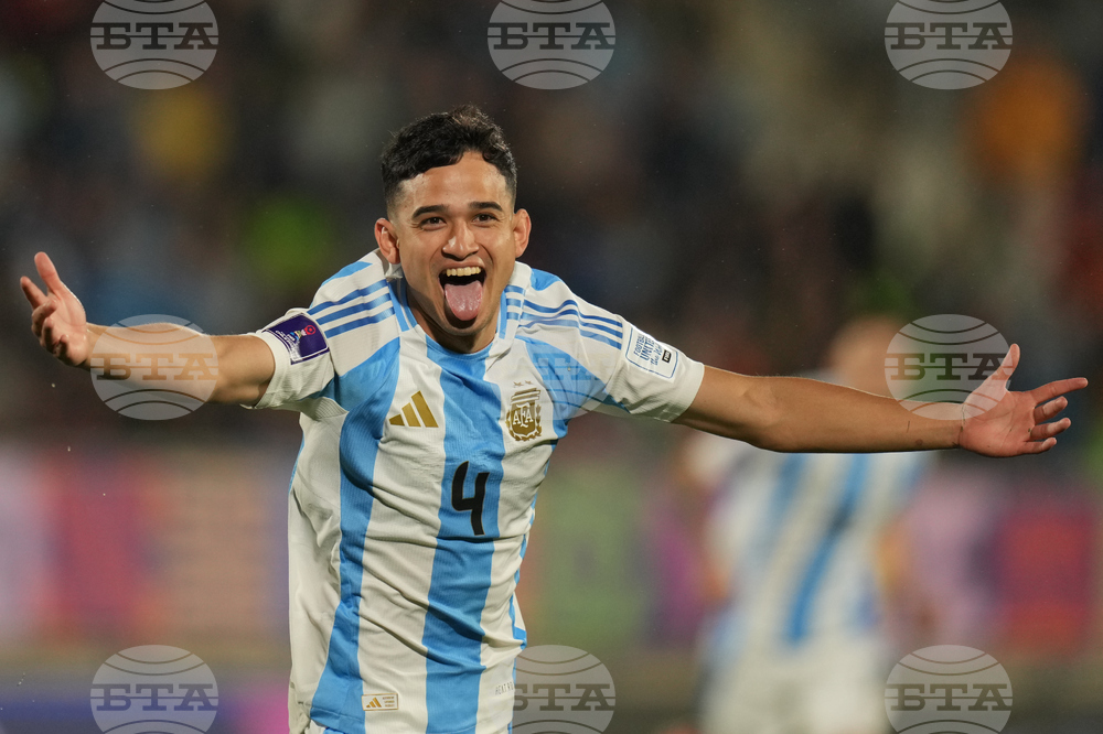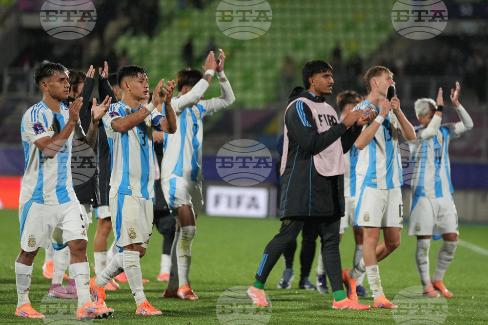 Argentina's players react at the end of a FIFA U-20 World Cup Group D soccer match against Italy at Elias Figuero Brander in Valparaiso, Chile, Saturday, Oct. 4, 2025. (AP Photo/Andre Penner)