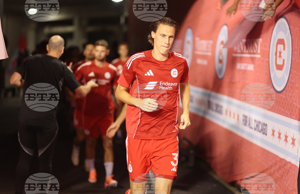 Chicago Fire FC goalkeeper Chris Brady walks out for warmups prior to an MLS soccer match against Toronto FC, Saturday, Oct. 4, 2025, in Chicago. (AP Photo/Talia Sprague)