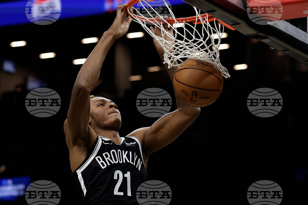 Brooklyn Nets forward/center Noah Clowney dunks the ball during the second half of a preseason NBA basketball game against Hapoel Jerusalem, Saturday, Oct. 4, 2025, in New York. (AP Photo/Adam Hunger)